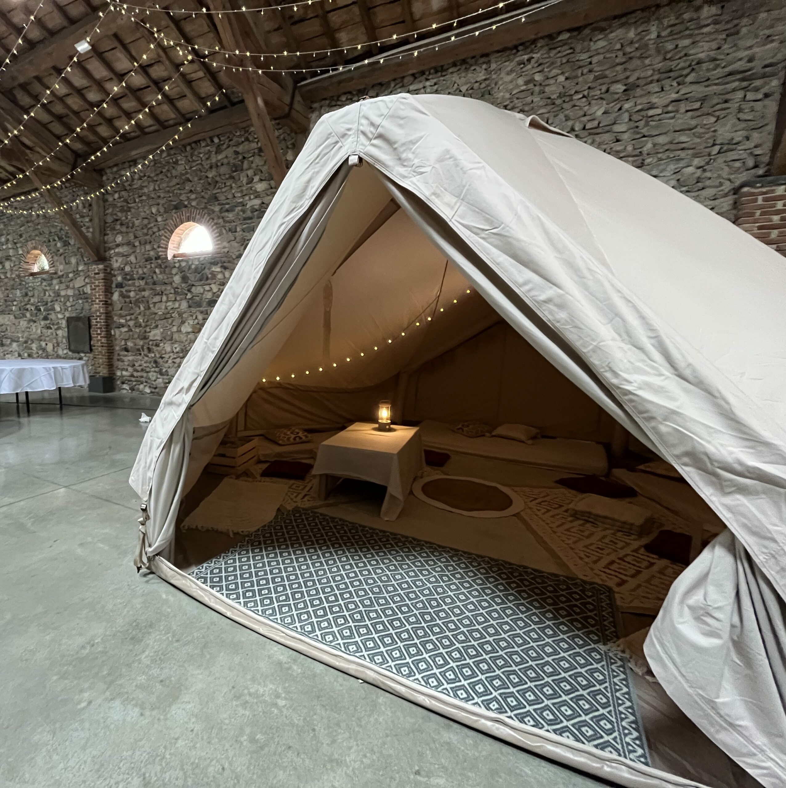 Une tente chill pour discuter, se reposer ou créer une bulle de calme au cœur de l’événement.